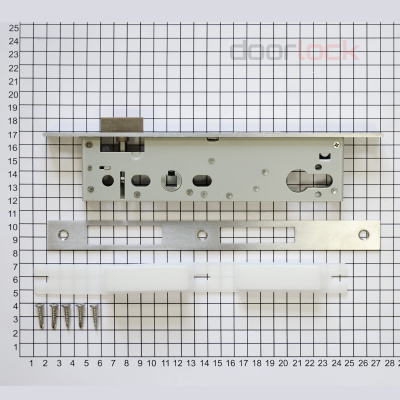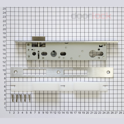 Ширина фронтальной планки. Данный параметр подбирается по толщине дверного полотна. Для узкопрофильных запирающих механизмов эта величина может варьироваться в пределах от 16 до 24 мм.